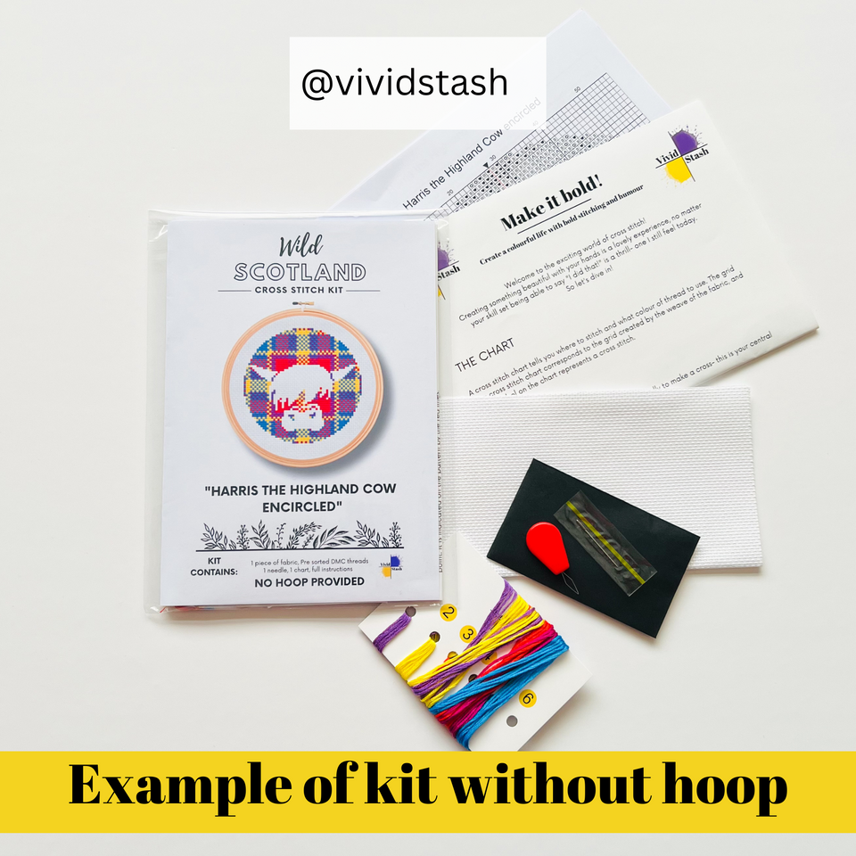 Harris the Highland Cow cross stitch designed by Vivid Stash